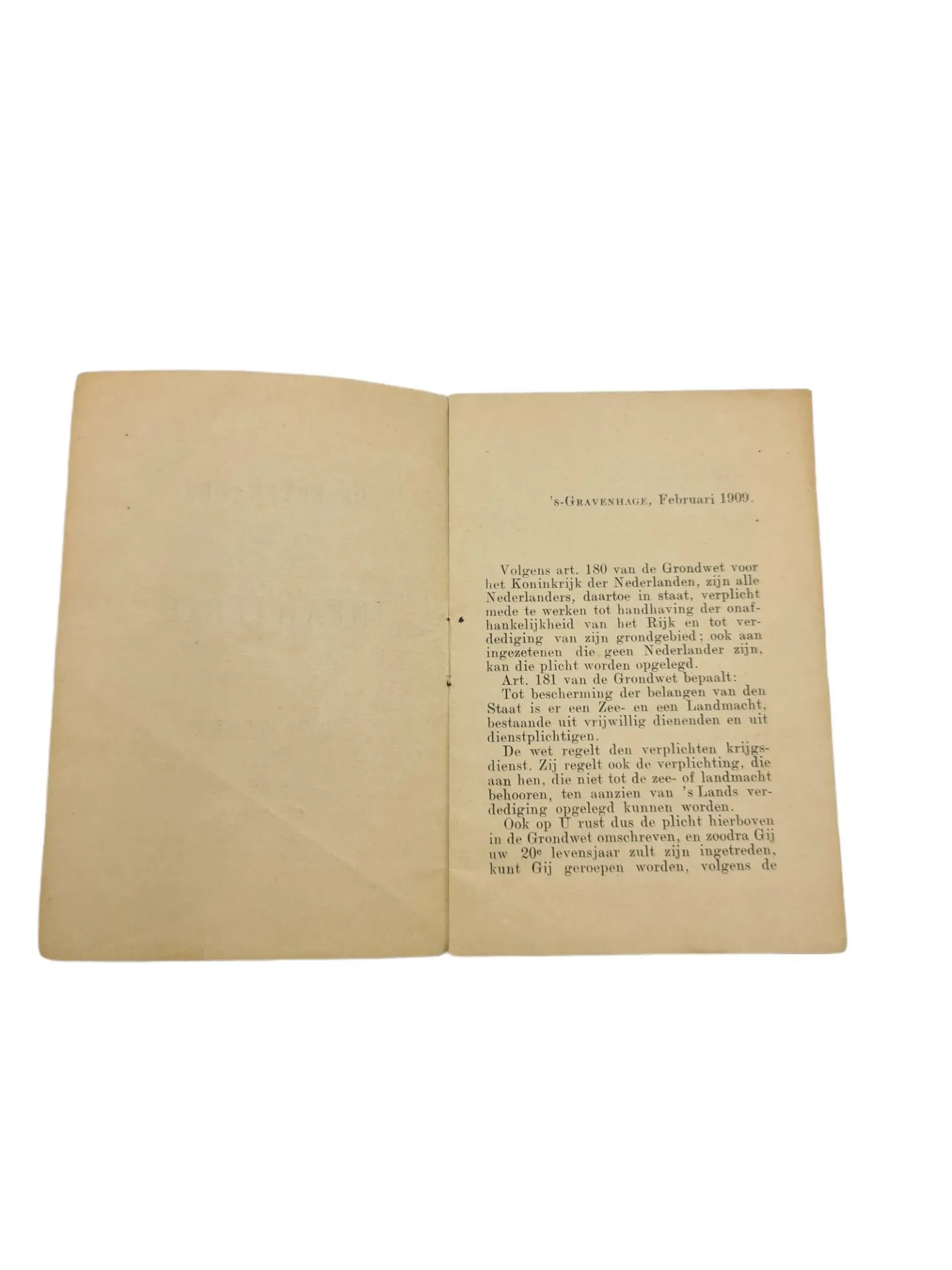 Nederlandse voorschrift Reservekader bij de infanterie en de vesting artillerie. Het boekje verkeerd in een zeer goede staat en is uitgegeven in 1909.